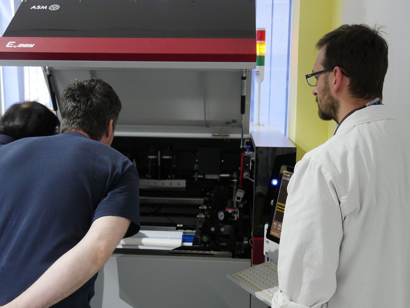 Die Lieferung der neuen SMD-Bestückungsmaschine The delivery of the new SMD pick-and-place machine
