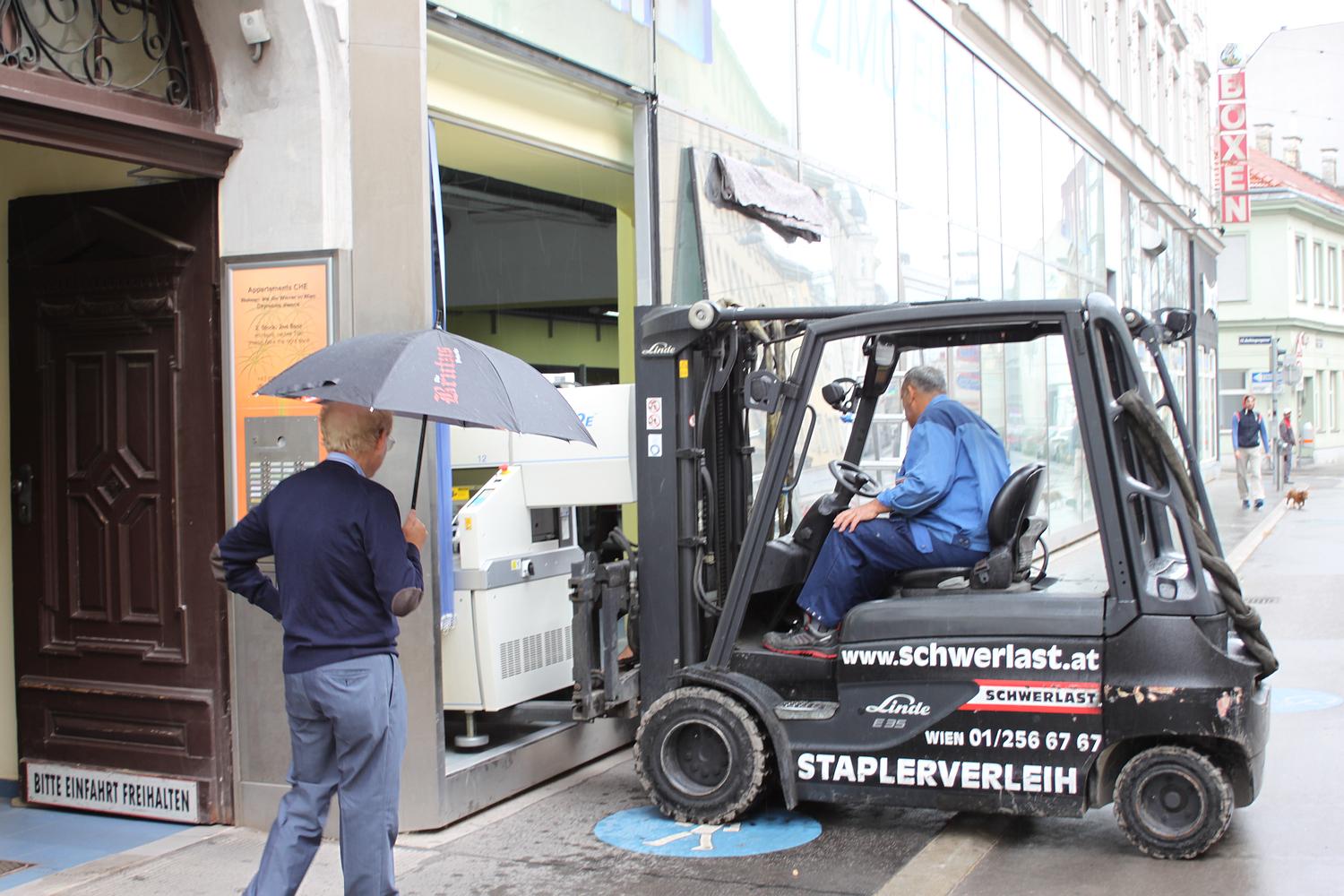 Die Lieferung der neuen SMD-Bestückungsmaschine The delivery of the new SMD pick-and-place machine